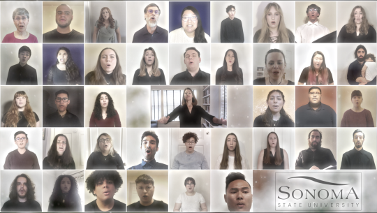 Members of our Sonoma State University Concert Choir and our premier choral ensemble, SonoVoce, beautifully perform "Glow" by composer, Eric Whitacre.