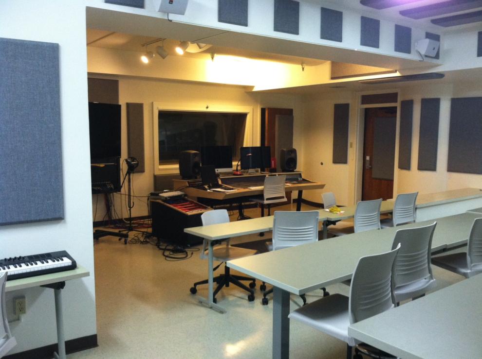 The Walford Recording Studio in Ives Hall Room 32 is available for use by students registered in a recording class and/or certified by the instructor. The studio is a professionally equipped, 24-channel Pro-Tools HD facility with a large recording room and isolation booths. The acoustically treated control room features an Avid C|24 control surface, Focusrite RedNet pre-amps, and Genelec studio monitors with subwoofer.
